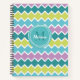 Girly Aqua Purple Geometric Pattern Monogram Notebook