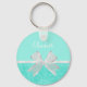 Girly Aqua Turquoise Damask White Ribbon With Name Key Ring