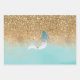 Girly Aqua Watercolor Gold Glitter Mermaid Wrapping Paper Sheet