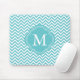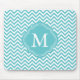 Girly Aqua White Chevron Stripes Monogram Mouse Pad