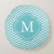 Girly Aqua White Chevron Stripes Monogram Round Cushion