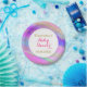 Colourful, personalised Baby Shower paper plate with a white and unicorn rainbow colour background, gold glitter sparkles confetti, and elegant gold and hot pink writing. You can easily add the name of your choice and change the colour and font of the name using the customise option!