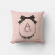 Girly Black Bow Modern Script Blush Pink Monogram Cushion