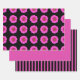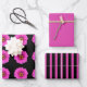 Girly Black Fuchsia Stripes and Flower Wrapping Paper Sheet