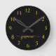 Girly Black Gold Minimalist Monogram Script Round Clock