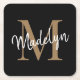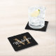 Girly Black Gold Monogram Elegant Modern Script Square Paper Coaster.Easily personalise this modern elegant square paper coaster with your custom monogram and name.
