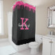 Girly Black Hot Pink Glitter Drips Monogram Name Shower Curtain