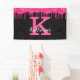 Girly Black Hot Pink Glitter Drips Monogram Party Banner