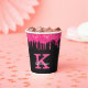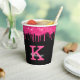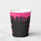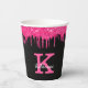 Girly Black Hot Pink Glitter Drips Monogram Party Paper Cups