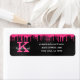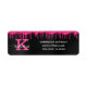 This trendy and unique glam girly design features hot pink fuchsia magenta glitter drips at the top and a large customisable monogram in bright pink on the left in popular serif typography along with a customisable name in white in popular script with a hand-lettered look. On the right are a customisable name and return address in popular, trendy sans serif typography on an elegant black grey onyx brushed metal background. You can personalise these labels by changing the text in the product template.