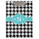 Girly Black Houndstooth Blue Monogram Clipboard