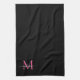 Modern Stylish Elegant Black Magenta Hot Pink Monogram Script Name Kitchen Towel