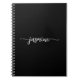 Modern, Simple, Black Monogram Name Feminine Signature Script Spiral Notebook. This minimalist plain colour design featuring your first name in a pretty hand lettered swash tail font typography white script on black colour background and easy to personalise them. Great custom personalised girly gift for Birthday Party, SWEET 16 Birthday party, Wedding, Bridal shower, BABY shower and for anyone who loves pretty minimalist style.