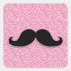 GIRLY BLACK MUSTACHE PINK GLITTER PRINTED SQUARE STICKER