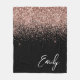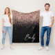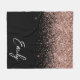 Girly Black Rose Gold Blush Pink Glitter Monogram Fleece Blanket