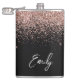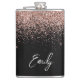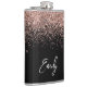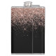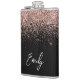 Girly Black Rose Gold Blush Pink Glitter Monogram Hip Flask