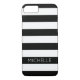 Girly Black White Stripes Custom Name Monogram Case-Mate iPhone Case
