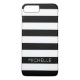 Girly Black White Stripes Custom Name Monogram Case-Mate iPhone Case