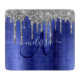 Add a touch of glam to your home decor with this elegant personalised cutting board. This chic design template features a modern navy blue script monogram with a name in grey on a background of cobalt blue brushed metallic texture with a top border of faux silver dripping glitter. A unique girly gift for birthday, holidays and any special occasion. Designed just for you by Extreme Tees!