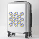 These girls' volleyball stickers (set of 13, approximately 3 inches each) feature volleyballs with blue, gold and white panels (the blue and gold panels are blended with an artsy, girly floral pattern) - customise each sticker with a player's name & jersey number plus school or club name and mascot name - economically priced at a little more than $1 per 3" sticker - by katz_d_zynes