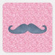 GIRLY BLUE MUSTACHE PINK GLITTER PHOTO SQUARE STICKER