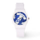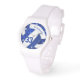 This cool girls' volleyball watch features white clock face numerals and a blue and white volleyball graphic upon which you can customise her name and jersey number - the blue volleyball panels are blended with a girly floral kaleidoscopic pattern - by katz_d_zynes