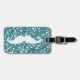 GIRLY BLUE WHITE MUSTACHE PRINTED GLITTER LUGGAGE TAG