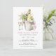 Fun, casual adult birthday invitations with a watercolor illustration of a chilled champagne bottle surrounded by florals and fancy glasses. Text is fully editable; including the event text. Can be changed to any age. The reverse side is a coordinating light pink.