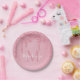 Girly Blush Pink Glitter Drips Monogram Birthday Paper Plate