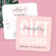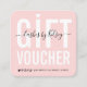 Trendy blush pink and white business gift cards with modern fonts and feminine colour scheme. Create custom gift vouchers for your beauty salon, spa or boutique with these elegant small gift certificate cards. Featuring a fully editable design, allowing you to customise all text and colours to match your brand!