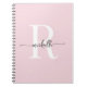 Girly Blush Pink Modern Script Monogram Name Notebook