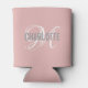 Girly blush pink monogram name can cooler. Personalise with your initial and name.