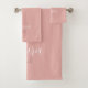 Girly blush pink monogram name script personalised bath towel set