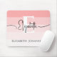 Girly Blush Pink Stripes Minimalist White Monogram Mouse Pad