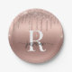 Girly Blush Rose Gold Glitter Dripping Monogram Paper Plate