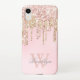 Girly Blush Rose Gold Glitter Drips Monogrammed iPhone Case