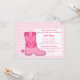 Yeehaw! This elegant, classy and stylish invitation is in the girly colour palette of pink great for a Western and Texas baby shower theme for mummy to be! The main elements of the design includes a beautiful cow girl boot with an interesting motif on it and a pink gingham pattern for background. Personalise with party details among white space available.