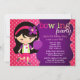Bright pink and purple colours for your bowling party invitation. Featuring a little brunette girl holding a bowling ball. Some elements by Corazon Dulce.