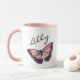 Elegant luxury Pink and Navy Glitter Monarch Butterfly Monogram Name Mug.