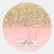Girly Chic Gold Confetti Pink Gradient Monogram Classic Round Sticker
