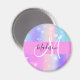Girly and cute magnet with a colourful pink, purple, lilac, blue and green unicorn rainbow hearts sparkly background. Your custom name and monogram are written in an elegant hand lettered script with a pink background. A perfect birthday or Christmas gift!