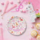 Girly Cute Pink Baby Dinosaur Kids Birthday Paper Plate