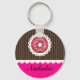 Girly Cute Pink & Brown Doughnut Personalised Name Key Ring