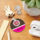 Super cute sweet doughnut design on graphic lace, brown stripes and pink background. At the bottom there's an area for custom name.