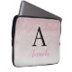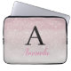 Girly Cute Pink Glitter Monogram Name + Initial Laptop Sleeve