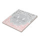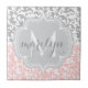 Girly Damask Swirls Pink and Grey Monogrammed Tile
