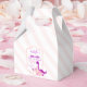 A pretty, fun , cute and girly dinosaur theme favour box for a little girl's birthday party who will be three-a-saurus ! Featuring a purple glittery Brontosaurus dinosaur and a pink Triceratops with purple glittery horns all set on a pink and white stripey background with a pretty pale pink frame. The word Dino-mite is in a purple glittery party font. A fun lovely play on words to show the special girl's birthday age Three-a-Saurus - The age can be amended to personalise the item along with the child's name and date of party. Have a wonderful party. Matching party items available.