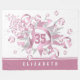 This fun girl's volleyball themed fleece blanket features an "explosion" of varied size dusty rose and white volleyballs and dusty rose, grey and white star shapes on a customisable black background - customise with athlete's name and jersey number - the dusty rose volleyball panels are blended with a girly floral kaleidoscopic pattern for a textured appearance, and a tiny polka dots pattern overlies the dusty rose star - by katz_d_zynes