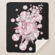 This cute girl's volleyball themed sherpa fleece blanket features an "explosion" of varied size dusty rose and white volleyballs and dusty rose, grey and white star shapes on a customisable black background - customise with athlete's name and jersey number - the dusty rose volleyball panels are blended with a girly floral kaleidoscopic pattern for a textured appearance, and a tiny polka dots pattern overlies the dusty rose star - by katz_d_zynes