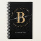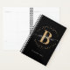 Girly, modern, trendy, elegant,black and gold monogram initial name script custom personalised monogrammed 2024 or any year planner. Featuring a monogram initial and a girly name script in a hand lettered calligraphy swash tail font and dotted circle frame around your name. Perfect feminine gift for girlfriend, sister, mother, birthday, wedding, bridal shower, sweet 16 birthday party, school, professional work, lashes extension makeup artist, home office, beauty salon owners, fashion blogger or anyone who loves pretty simple style.